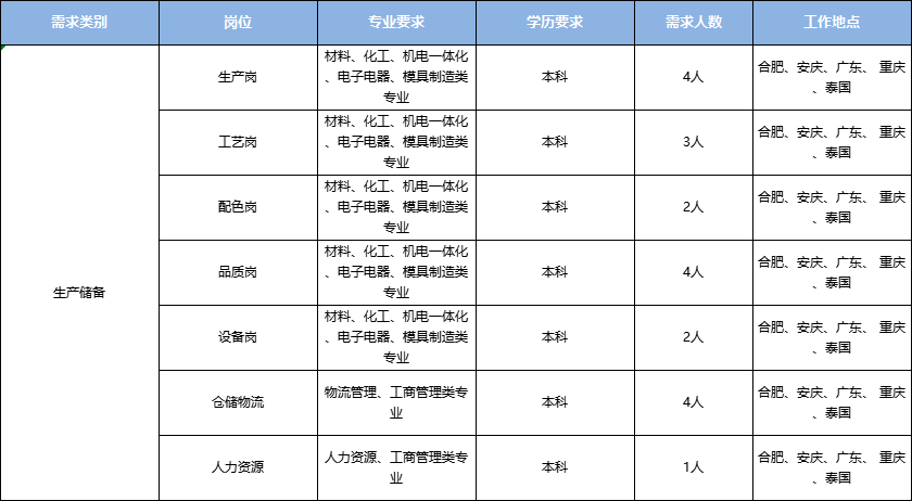 合肥、安庆基地:研发、生产基地,辐射华东、华中、华北区域