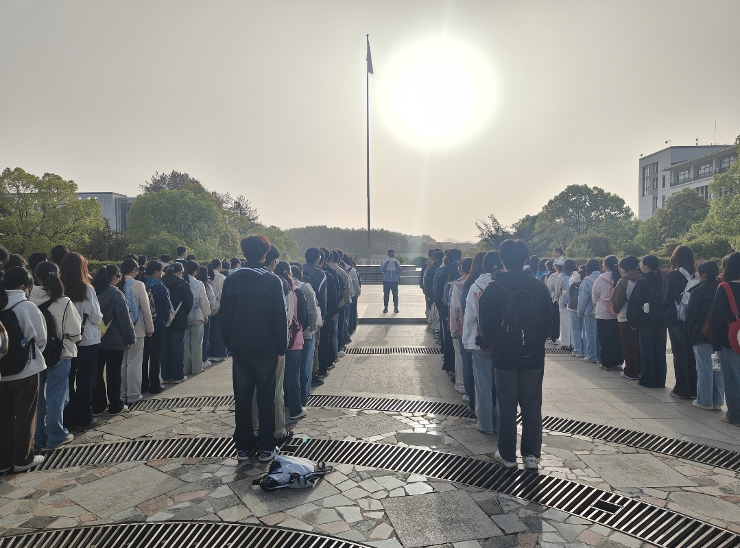 为弘扬和践行社会主义核心价值观,激发广大青年学子爱国热情,增强民族自豪感,4月14日化学化工学院组织学生开展“升国旗、唱国歌”主题教育活动,专职辅导员田子豪以及2024级制药工程专业学生参加活动。