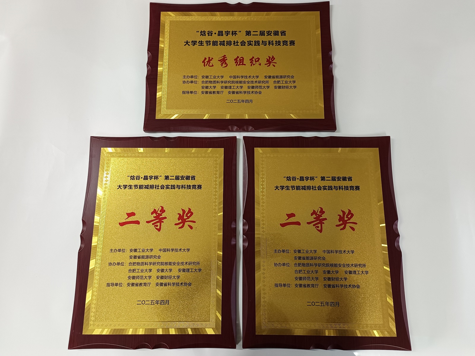 4月19日至20日,“焓谷•晶宇杯”第二届安徽省大学生节能减排社会实践与科技竞赛决赛在安徽工业大学落下帷幕。决赛中,孟德月、王卓越、时光明、马宇飞、何明耀等同学的参赛作品《“氟”入氢网:一种基于氢键介导的可再生选择性高效 F-吸附剂》(指导老师:王澍)和丁晴、张巧巧、张子恩、谢雨婷、陈琦、刘雨等同学的参赛作品《基于仿生材料的多能源协同驱动全天候空气集水装置》(指导老师:孙银宇、汪平)获本科生组二等奖。365英国上市官方网站获“优秀组织奖”。