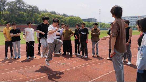 在“团队跳大绳”游戏中,同学们则需要在规定时间内完成尽可能多的跳绳次数。这一项目不仅考验了个人的技巧,更需要团队成员之间的默契配合。摇绳的同学需要保持稳定的节奏,跳绳的同学则需要精准地把握时机。通过这一游戏,同学们不仅锻炼了身体协调能力,还进一步增强了团队意识和集体荣誉感。