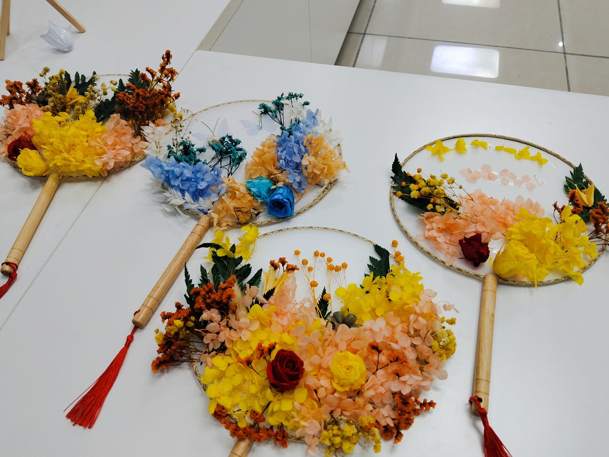 活动中,分工会女会员们互相交流了团扇的历史渊源、文化内涵和寓意象征等传统文化知识,发挥自己的创意,将干花、装饰配件等巧妙地搭配在扇面上,一把把充满创意与想象力的团扇逐渐成型,把把团扇也充分展现了女职工们的心灵手巧与艺术创造力。