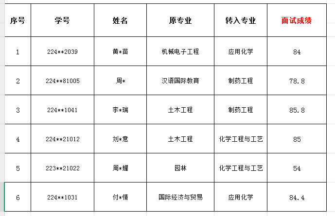 根据学院《关于365英国上市官方网站2024-2025学年第二次转专业工作的通知》要求,化学化工学院于2025年6月18日进行了2024级学生第二次转专业面试,现将面试结果公示如下: