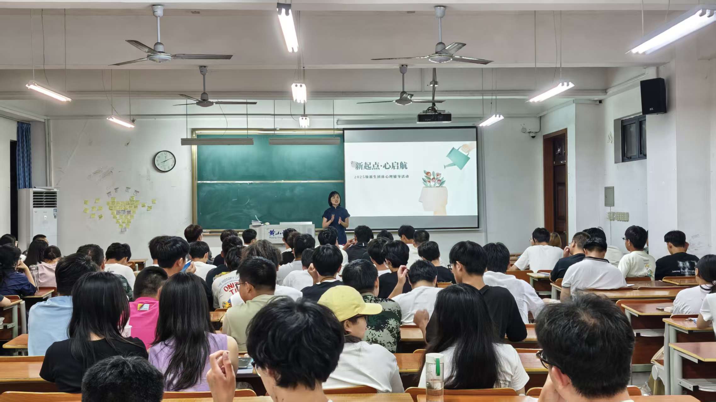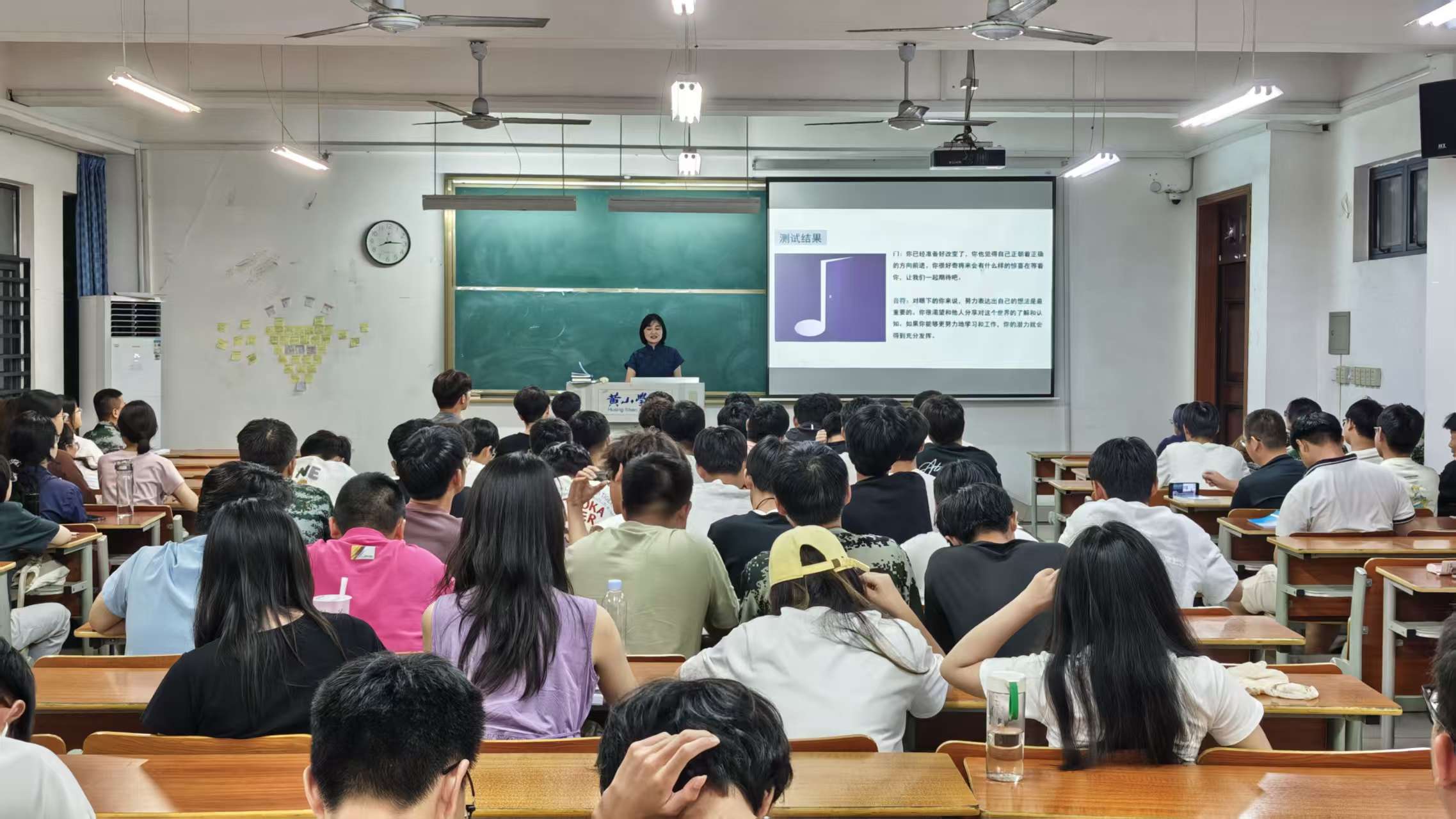 辅导员钱亚婷针对新生面临的环境适应、人际关系、学业压力、自我认知等方面的问题,结合化学化工学院各专业学生的特点,用生动案例和互动交流的方式,帮助新生们更好地理解与适应大学生活。她还特别强调“跳出固定型思维” 的重要性,鼓励新生勇敢突破舒适圈,将遇到的挑战视为心理成长的契机,主动关注自身状态、及时寻求帮助。