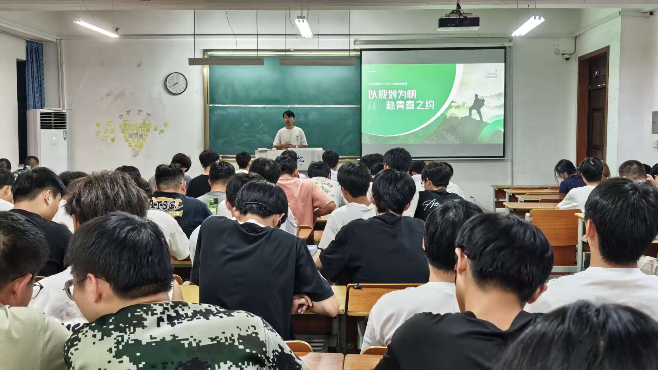 辅导员张浩胜围绕生涯发展的不同阶段,结合鲜活的案例,提醒新生们:大一是自我探索的重要阶段,也是认识自我、发现兴趣、明确方向的关键期,要时刻摒弃随波逐流、盲目跟风的思想态度。同时,他还鼓励新生要把专业作为核心动力,勤思考、善创新、积极参加竞赛、考取技能证书、保持健康心态,为未来发展做足准备、夯实基础。