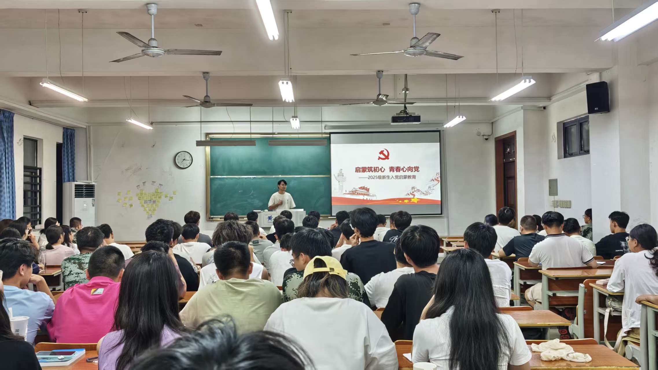 辅导员张浩胜以“启蒙筑初心,青春心向党”为主题,分别从“中国共产党的性质、最高理想与宗旨”“中国共产党党员的条件”“端正入党动机”以及“入党的程序和步骤”四个方面,为新生带来一场深刻而生动的入党启蒙教育。通过理论解读与实践引导,深化青年学子对五个认同的认知,强化感党恩、听党话、跟党走的思想自觉和行动自觉,培育新时代青年的家国情怀与使命担当。