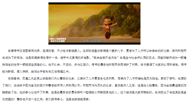 19制药班孙洁分享电影《哪吒之魔童降世》