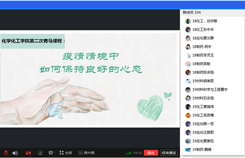6月15日至6月23日期间,化学化工学院成功举办2020年线上青马工程培训班,99名学员参加本次青马班学习,并顺利结业。