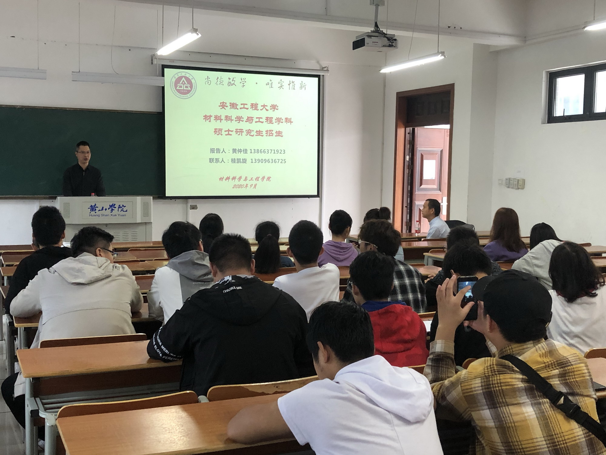 9月25日上午,安徽工程大学材料科学与工程学院院长黄仲佳等一行来化学化工学院为2017和2018级学生开展了硕士研究生招生宣讲。材料科学与工程教研室教师一同参加了宣讲会。