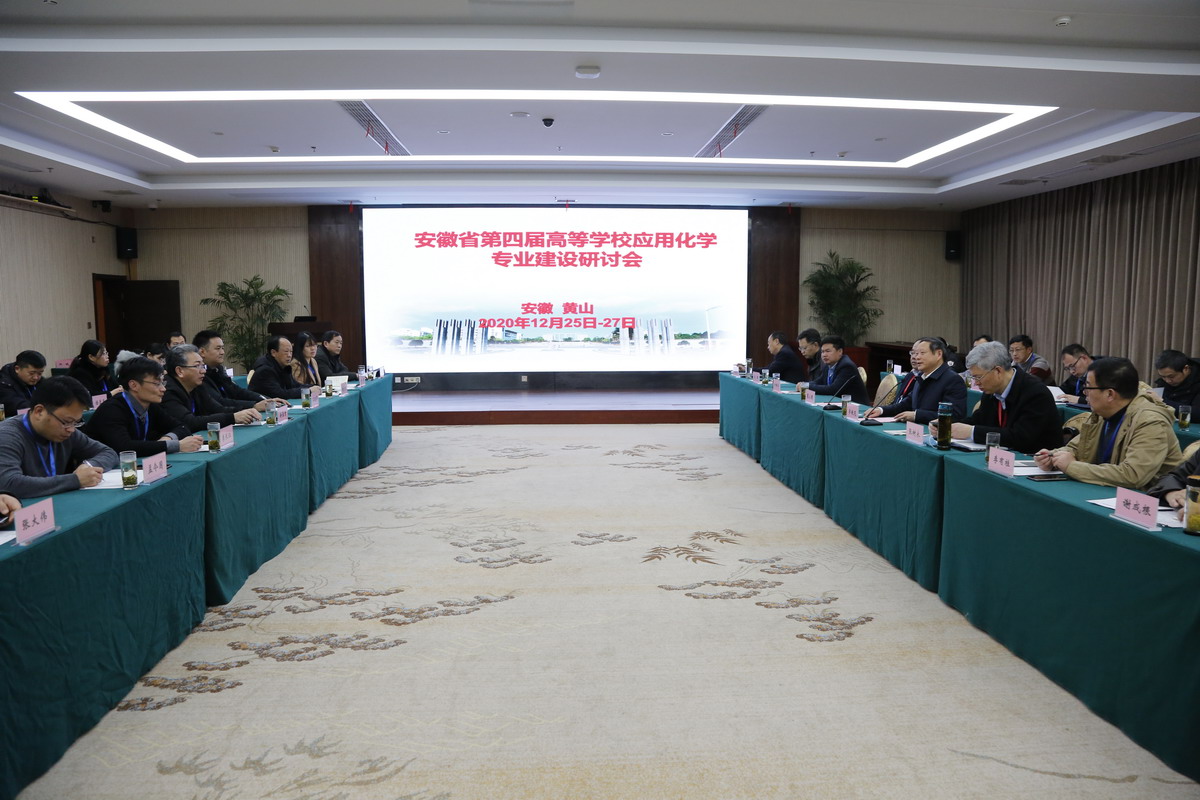 2020年12月25至27日,安徽省第四届高等学校应用化学专业建设研讨会在黄山市召开。会议由365英国上市官方网站承办,来自合肥工业大学、安徽师范大学等省内16所高校二级学院的党政领导及应用化学专业的专家学者六十余人参加了本次会议。校党委副书记、校长李铁范出席开幕式并致辞,校党委委员、教务处处长张小明主持开幕式,化学化工学院负责人和应用化学教研室全体教师等参加了会议。