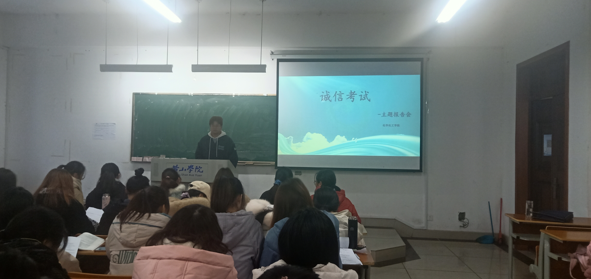 为树立学生诚信为本的道德理念,营造积极向上的考试氛围,为进一步推进公平公正的考风考纪建设,2021年1月6日中午,化学化工学院在5101教室举行了“诚信考试,拒绝作弊”主题报告会。