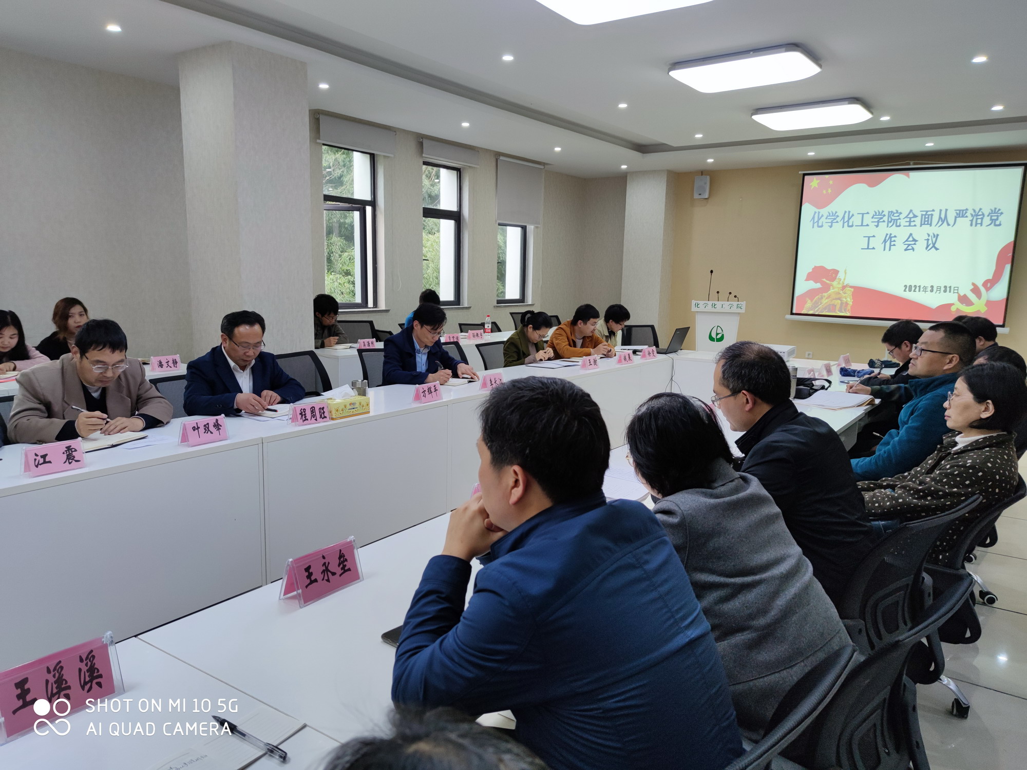 3月31日下午,化学化工学院在学院会议室逸夫综合楼楼5316召开年全面从严治党工作会议。化学化工学院全体教师参加会议,会议由学院党委副书记叶双峰主持。