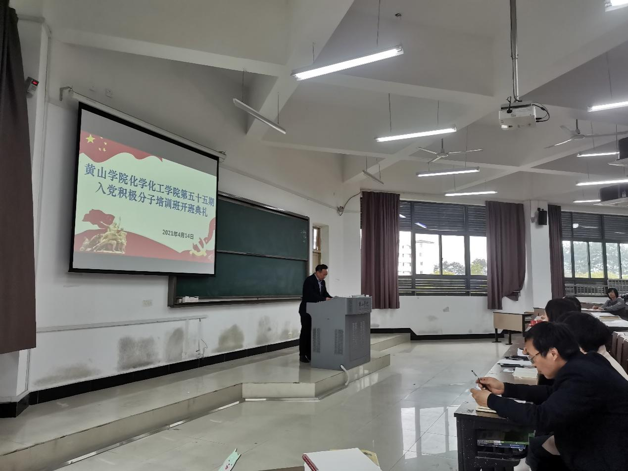 为深入学习贯彻习近平新时代中国特色社会主义思想,切实做好入党积极分子培训教育工作,4月14日下午, 化学化工学院党委在文渊楼1206教室召开第55期入党积极分子开班典礼。校党委组织部副部长张爱民,化学化工学院党委书记程周旺、党委副书记叶双峰、学院各党支部书记、党校的管理老师及55期培训班全体学员参加本次开班典礼,叶双峰主持开班典礼。