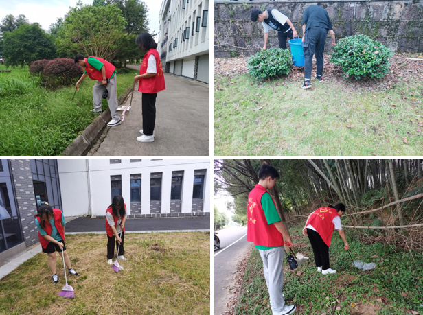 活动中志愿者们,手拿扫帚、钳子、畚箕等清扫工具分工合作,对逸夫综合楼及周边公共区域的垃圾等进行清扫,重点对灌木丛中的塑料袋、花坛中的杂草、纸屑等进行了细致的清理。活动中,大家热情高涨、干劲十足,不怕脏,不怕累,认真打扫每一个角落。经过一个多小时的清扫,教学楼周边环境焕然一新。