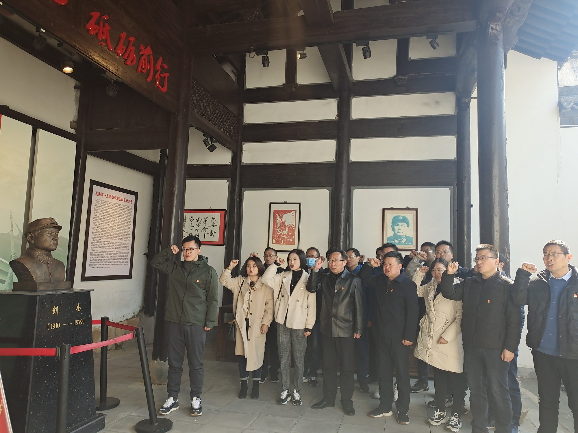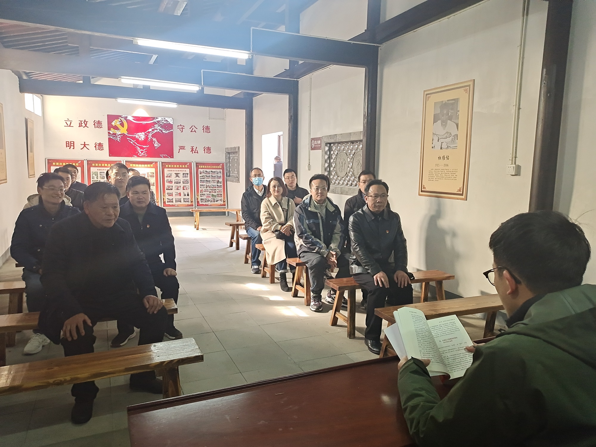 全体党员在岩源村项书记的带领下,参观了岩源革命历史陈列馆。革命老区岩源是上世纪三四十年代在皖南山区中心县委领导下的革命根据地。1941年皖南事变后,新四军游击队队长刘奎、指导员李建春以及胡明等先后带领游击队深入岩源地区,传播革命真理,开展革命斗争,发展和壮大革命力量。跟随着项书记声情并茂的解说,通过大量珍贵的历史照片和文物,全体党员重温了那一段光辉的革命历程。
