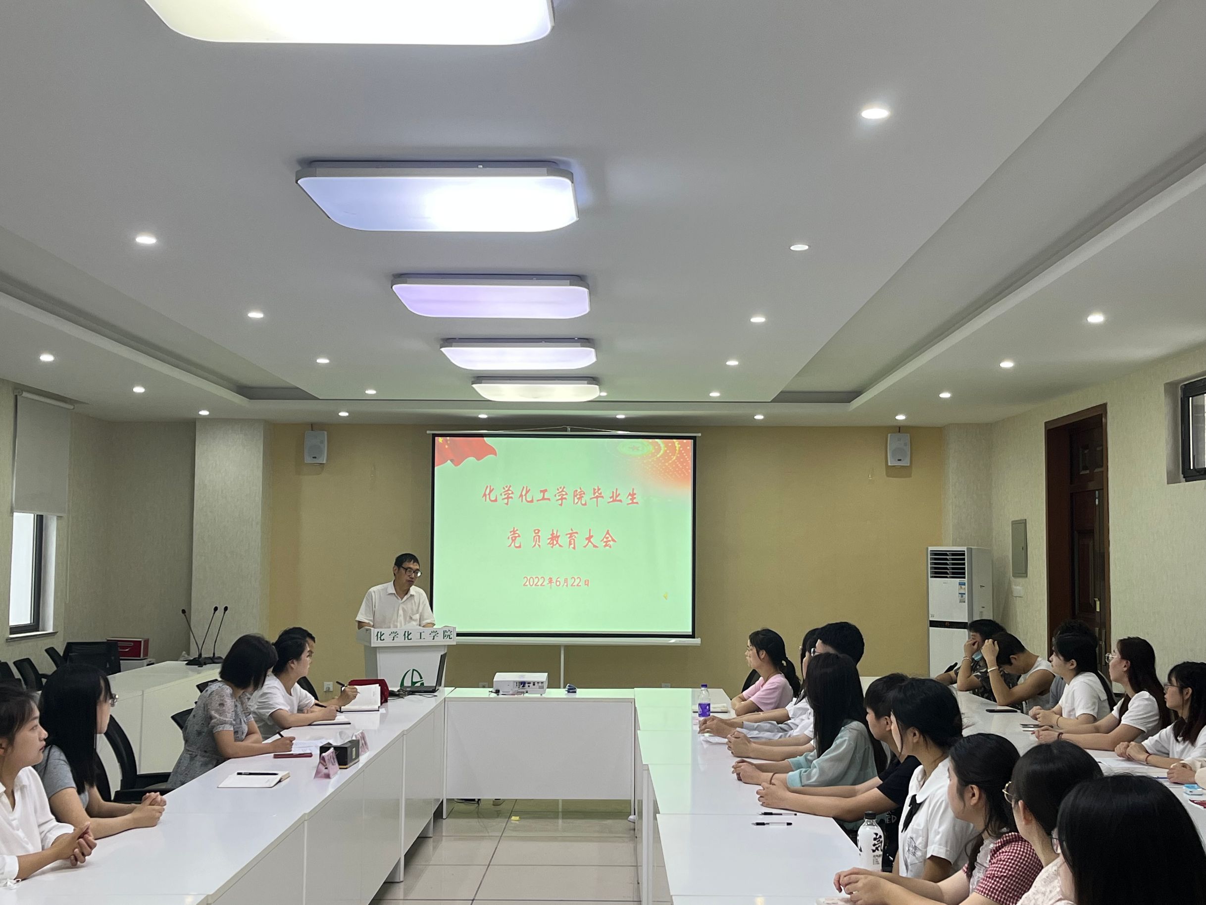 6月22日,化学化工学院召开毕业生党员教育大会,通过学专题党课,颁发党章和政治生日纪念册、重温入党誓词等活动,引导毕业生党员牢记党员身份,坚定不移听党话、矢志不渝跟党走,把爱国情、强国志、报国行融入毕业生后的人中征途中,持续发挥党员的先锋模范带头作用,以优异成绩迎接二十大胜利召开。