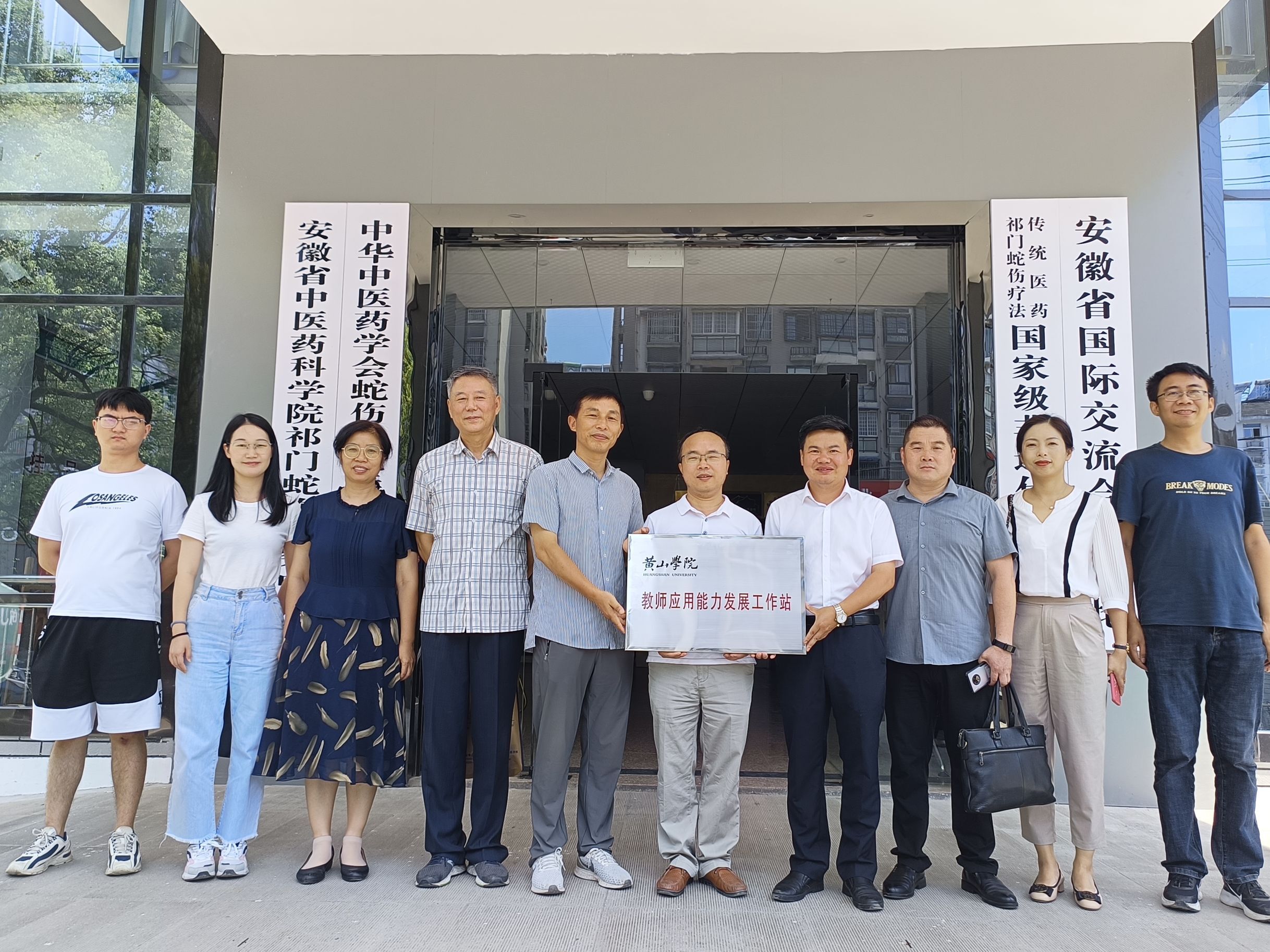 8月10号上午,化学化工学院院长方辉平、党委副书记李伟伟一行5人赴祁门蛇伤研究举行产学研合作签约暨教师应用能力发展工作站挂牌仪式。祁门县委常委、副县长吕海江,卫健委主任叶树勤,蛇伤研究所所长汪胜松等出席参加了签约仪式。方辉平和汪胜松代表学院和研究所为教师工作站揭牌。