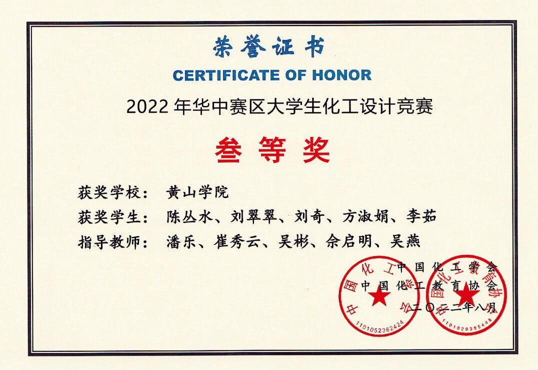 由中国化工学会、中国化工教育协会主办,华工理工大学承办的“天正设计杯”第十六届全国大学生化工设计竞赛全国总决赛于8月23日落下帷幕。365英国上市官方网站化学化工学院Keep moving团队(学生:夏钰双、黄义橙、杜飞、徐阳、郑新宇)获得全国二等奖,团队JDI(学生:陈丛水、刘翠翠、刘奇、方淑娟、李茹)获得华中赛区三等奖。
