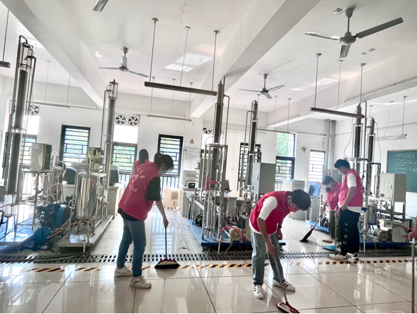活动中,部分志愿者们带着扫帚、簸箕等工具,对逸夫综合楼周边灌木丛中的塑料袋、花坛中的杂草、纸屑等进行了细致的清理,部分志愿者来到实验室进行了清扫活动,擦桌子、摆放物品、扫地、拖地。在本次的清洁活动中,每个同学都热情高涨,积极认真地进行打扫,不放过任何一个死角,力求营造一个舒适整洁的学习环境。