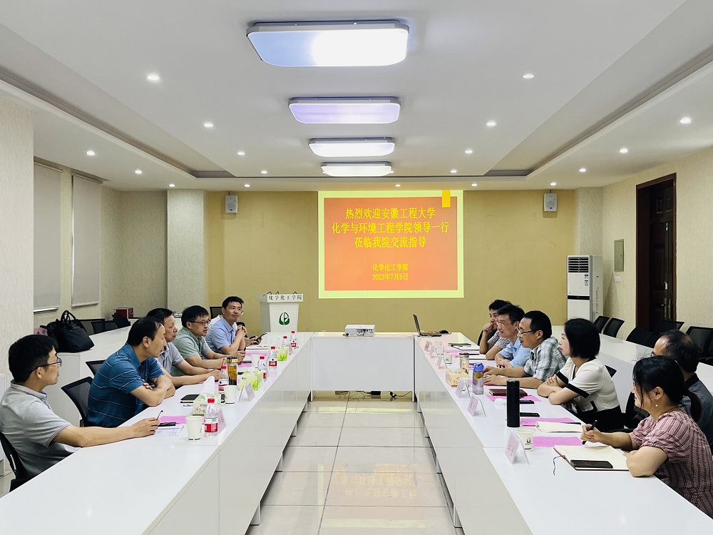 7月5日下午,安徽工程大学化学与环境工程学院党委书记章兵一行来我院交流指导工作,学院党委书记叶双峰、党委副书记李伟伟、副院长李长江、教研室主任、学术委员会主任和产教融合中心主任等参加座谈。