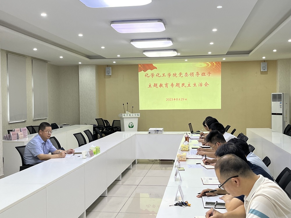 8月29日上午,化学化工学院党委召开学习贯彻习近平新时代中国特色社会主义思想主题教育专题民主生活会,校党委委员、组织部部长、统战部部长周权到会指导,学院领导班子、科级干部、党支部书记参加会议,会议由学院党委书记叶双峰主持。