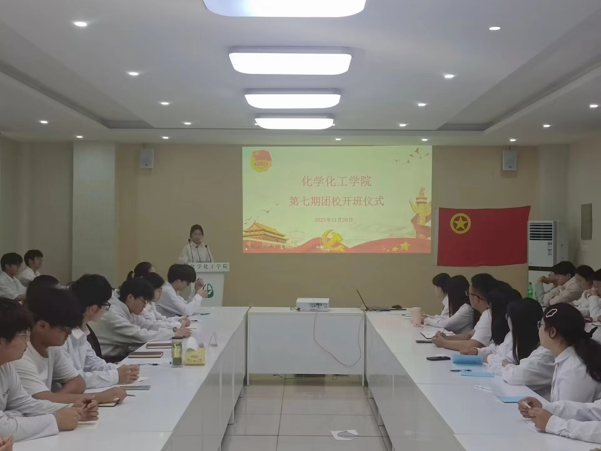 为深入学习贯彻习近平总书记关于青年工作的重要论述,落实团的十九大精神,进一步加大对新时代青年的培养教育力度,引导青年大学生坚定不移听党话、跟党走,11月29日下午,化学化工学院于逸夫综合楼5316会议室举办第七期团校开班仪式,学院党委书记叶双峰、团委负责人方婷以及全体学员参加本次开班仪式。