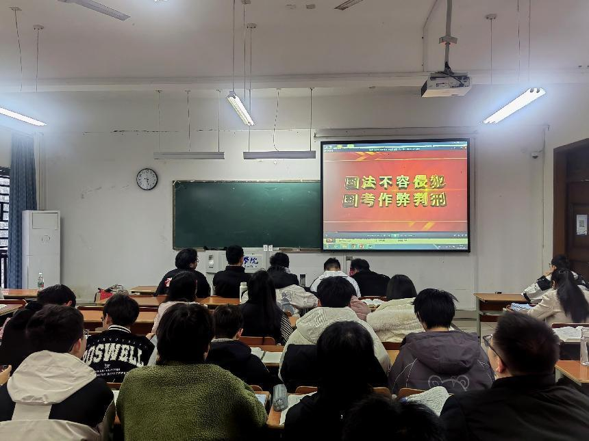 观看警示教育宣传片,强化学生诚信考试意识。进一步强化学生诚信考试意识,学院各年级辅导员组织学生观看警示教育宣传片,增强学生的法律意识,深刻认识诚信考试的重要性和严肃性。