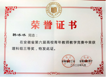 外引内培全面提高教师整体结构和水平。近五年,3人晋升教授,6人晋升副教授。共引进9名博士,培养4名博士(在读1人),国内外访学2人,5人进入博士后工作站。获评省级教学名师1人,省级教坛新秀2人,获省部级教材奖1项,省教学竞赛奖3人次,获得校教学一等奖7人次,7人获批“双能型”教师。教师共主持各类教学质量工程项目99项,其中省级以上51项。安徽省自然科学基金3项,安徽省重点研究与开发计划项目3项,市厅级科研项目69项,横向项目267项,累计到账研究经费近840余万元;教师发表各类论文107篇;教师获批专利142项,其中发明专利80项,位居全校前列。
