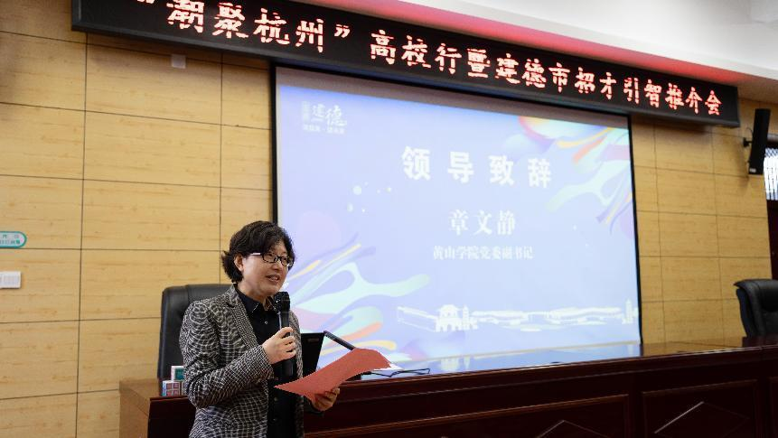 推介会上,章文静对刘国金一行表示诚挚欢迎,对建德市各级政府以及用人单位长期以来关心和支持学校就业工作表示感谢,并向与会人员详细介绍了学校专业设置、办学特色、产学研合作、毕业生就业工作等情况。她指出,建德市历史悠久,文化底蕴丰富,经济发展繁荣,重点围绕生物医药、新材料、通用航空、智能制造以及水产业,打造了省级产业主平台,希望通过此次推介会,在更宽领域、更深层次、更大范围推进双方合作达到新成效。她要求同学们保持平实之心,充分把握本次“面对面”的机会,深入、细致了解建德市人才政策和各个企业的招聘要求,主动出击、精准出击。