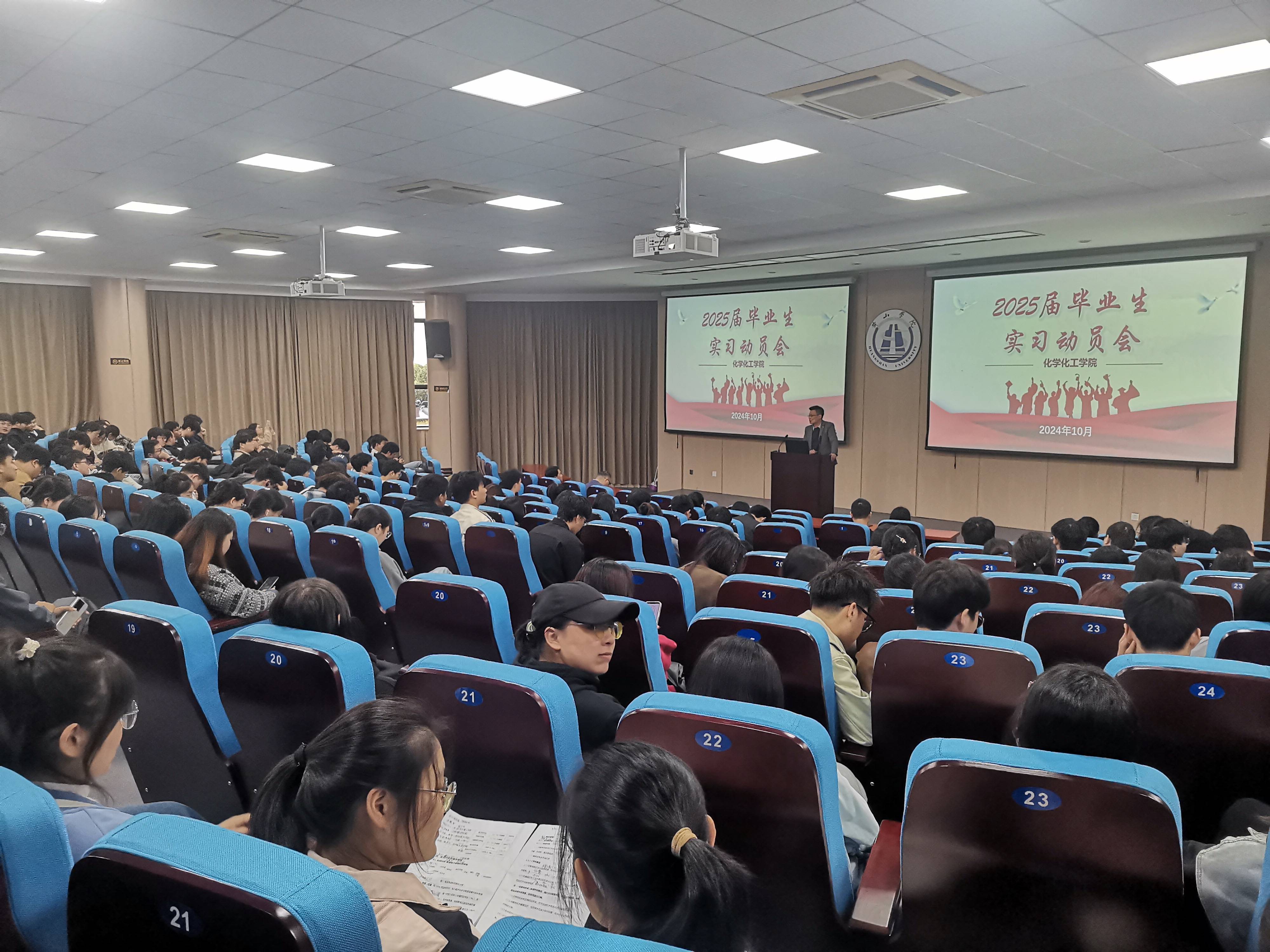为扎实做好毕业生实习工作,化学化工学院于10月28日下午,在文端楼第一报告厅举行了2025届毕业生实习工作动员大会。会议由化学化工学院产教融合中心主任江蓉主持,学院党委副书记、院长李长江、各专业教研室主任、毕业班辅导员及全体2025届毕业生参加了实习动员大会。