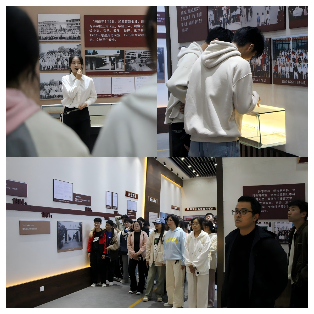 同学们在讲解员的带领下参观了校史馆的各个展区。从创校初期到如今的辉煌成就,每一幅图片、每一件展品都生动地展现了学校的发展脉络。通过观看历史文献、珍贵照片和实物展品,同学们对学校的发展历程有了更深入的了解。