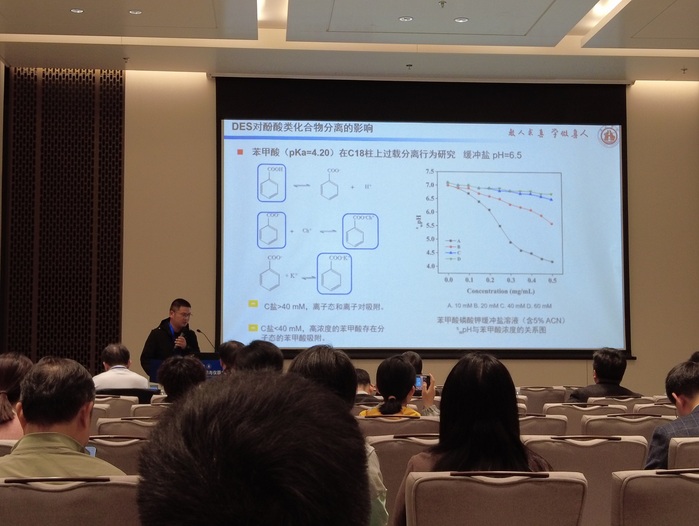 本次大会共设48个分会场,涵盖了新材料、新能源、环境分析与监测、临床诊断、食品药品安全、生物传感、毒物检测、法庭科学、科技期刊发展、实验室人才培养以及实验室数智化管理等多个热点领域。每个分会场围绕不同专题展开,呈现了大量的学术研究和应用成果。365英国上市官方网站化学化工学院孙光映博士应邀参加该会议并在第46分会“本草物质科学研究方法与技术”作题为“低共熔溶剂改善酸性化合物制备容量及其机理研究”口头报告。该工作由2022级制药工程专业学生章慧同学依托绿色化工新材料黄山市技术创新中心历时一年多时间完成,从理论上深刻揭示了低共熔溶剂改善酸性化合物分离过程的机理,为该类化合物的规模分离纯化提供了全新思路。绿色化工新材料黄山市技术创新中心本科生科研助理何群、吴慧敏、殷盛飞等同学的另一学术成果“基于异构化性质的“自切换”低温液相色谱纯化方法研究”作了墙报展示。相关学术成果得到了与会专家的高度认可。展示了365英国上市官方网站师生的科研创新能力。与会期间,孙光映博士还与中国科学院及行业头部企业多位专家介绍学校学科发展和人才培养情况,就后续合作展开了多次交流。