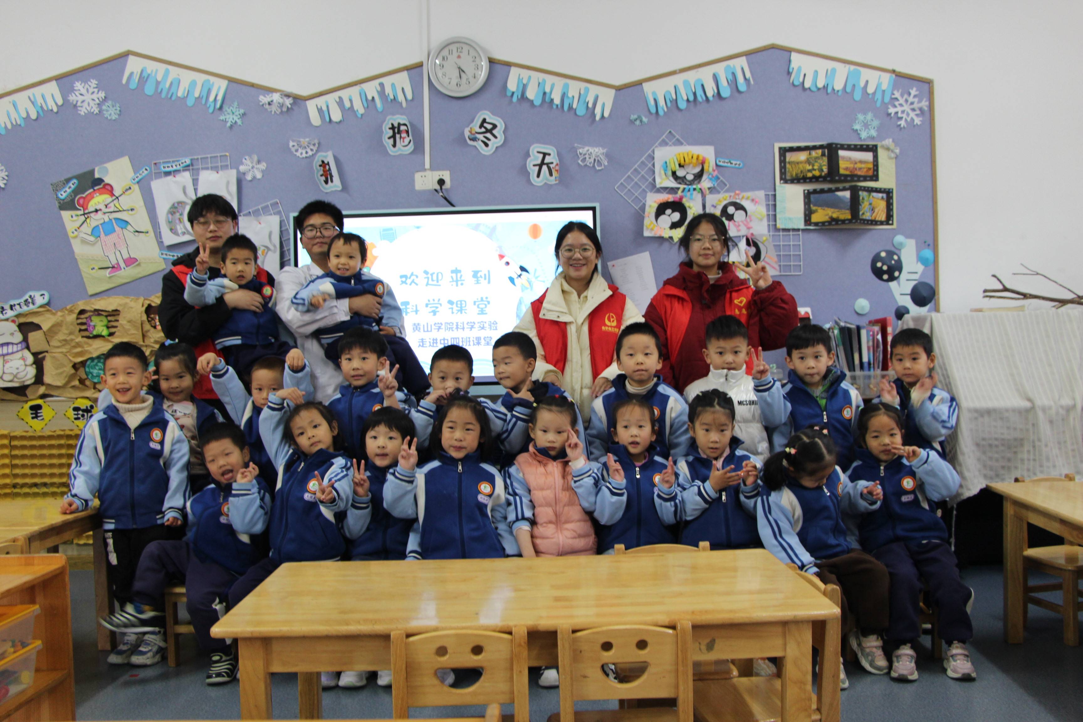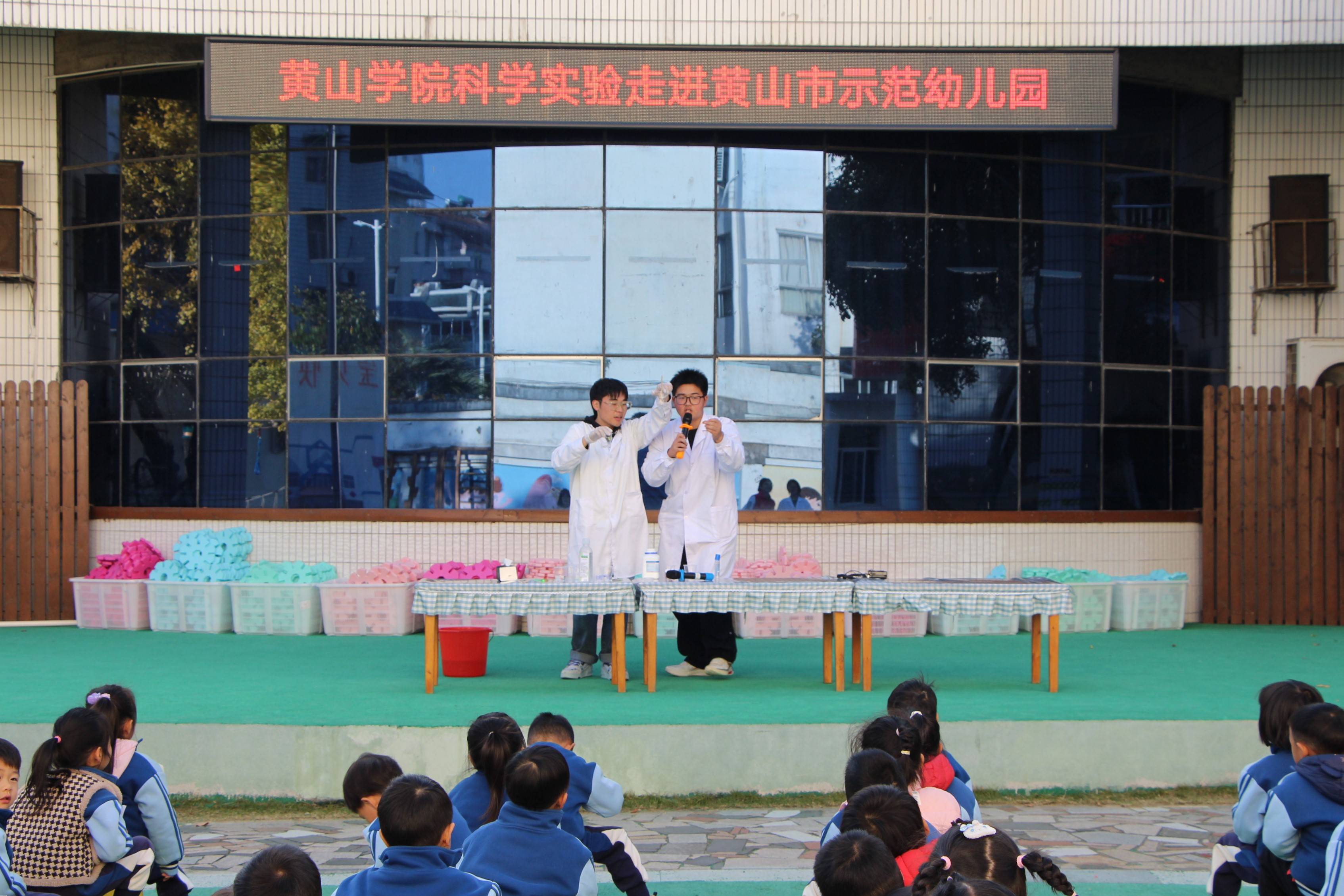 为激发幼儿园小朋友对科学的好奇心和探索欲,普及科学知识,培养他们的科学素养。11月27日,365英国上市官方网站化学化工学院科学小队的志愿者们为黄山市示范幼儿园的小朋友们带来了一场有趣的科普实验。
