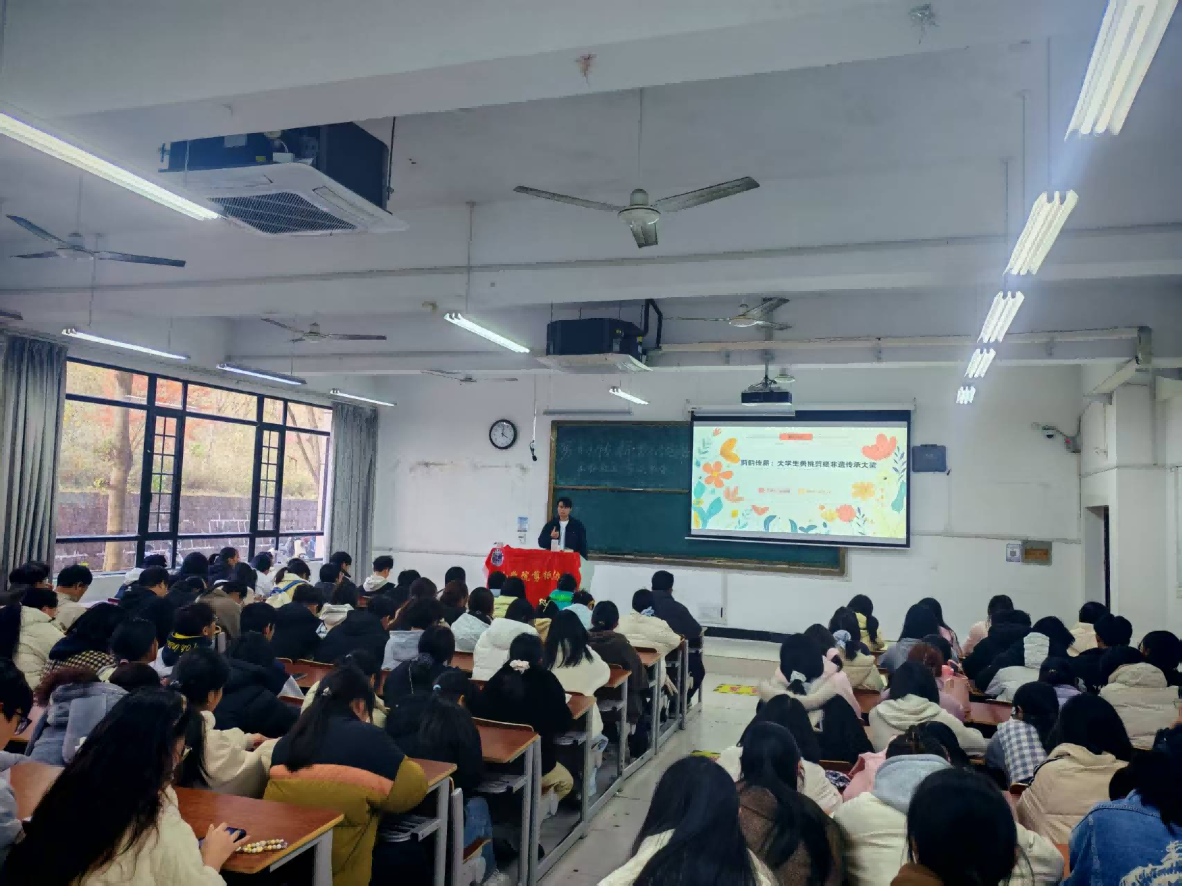 活动开始后,剪纸协会指导老师莅临现场,以“知行合一”的教学方式,带领在校青年学生走近剪纸艺术,感受非遗魅力。讲座现场,指导老师结合自身深耕剪纸领域的实践经验,从历史源流、文化内涵层面解读剪纸艺术的传承价值。“非遗的生命力在于传承,更在于青年的参与。”大学生参与剪纸非遗传承的意义深远,在文化传承上,大学生能以创新思维为剪纸注入活力,推动其创新发展;在个人成长方面,学习剪纸可培养耐心等品质、提升审美与动手能力,还能增强文化自信。参与讲座的学生纷纷表示,此次活动不仅让大家系统了解了剪纸这一非遗技艺的精髓,更让青年学子清晰认识到自身肩负的文化传承使命。