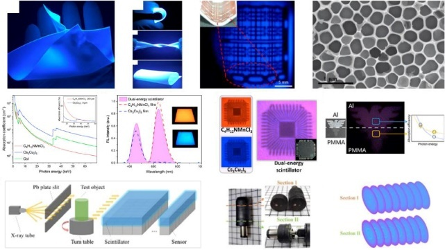 闪烁体是一种能够吸收高能X射线并将其转化为低能可见光的新型功能材料。基于闪烁体的这种特性,其被广泛应用于医疗检查(X片以及CT等医学检测),因此研究制备高效辐射发光的闪烁体材料对于高效率辐射成像具有重要意义。近年来,Cs3Cu2I5晶体因为其独特的自限域激子荧光发光,良好的X射线吸收效率和稳定性,被广泛研究并应用于X射线闪烁体相关领域,但是目前仍然存在着晶体制备困难,辐射荧光发光效率偏低,荧光寿命较长等问题,严重制约了其在X射线成像领域的应用。文章首先系统性地概述了基于Cs3Cu2I5晶体闪烁体的最新研究进展,包括晶体结构、荧光发光机制、纳米晶体和单晶的合成及其闪烁性能,重点介绍了光产额、荧光寿命等关键参数。其次文章探讨了金属离子掺杂在调控Cs3Cu2I5晶体光电性能领域的作用,包括荧光发光波长、光产额和荧光寿命的变化。最后,文章展示了Cs3Cu2I5晶体在双能X射线成像、多能线阵探测器和计算机断层扫描 (CT) 成像等领域的应用前景,并为解决当前材料合成和器件集成中的挑战进行了展望。
