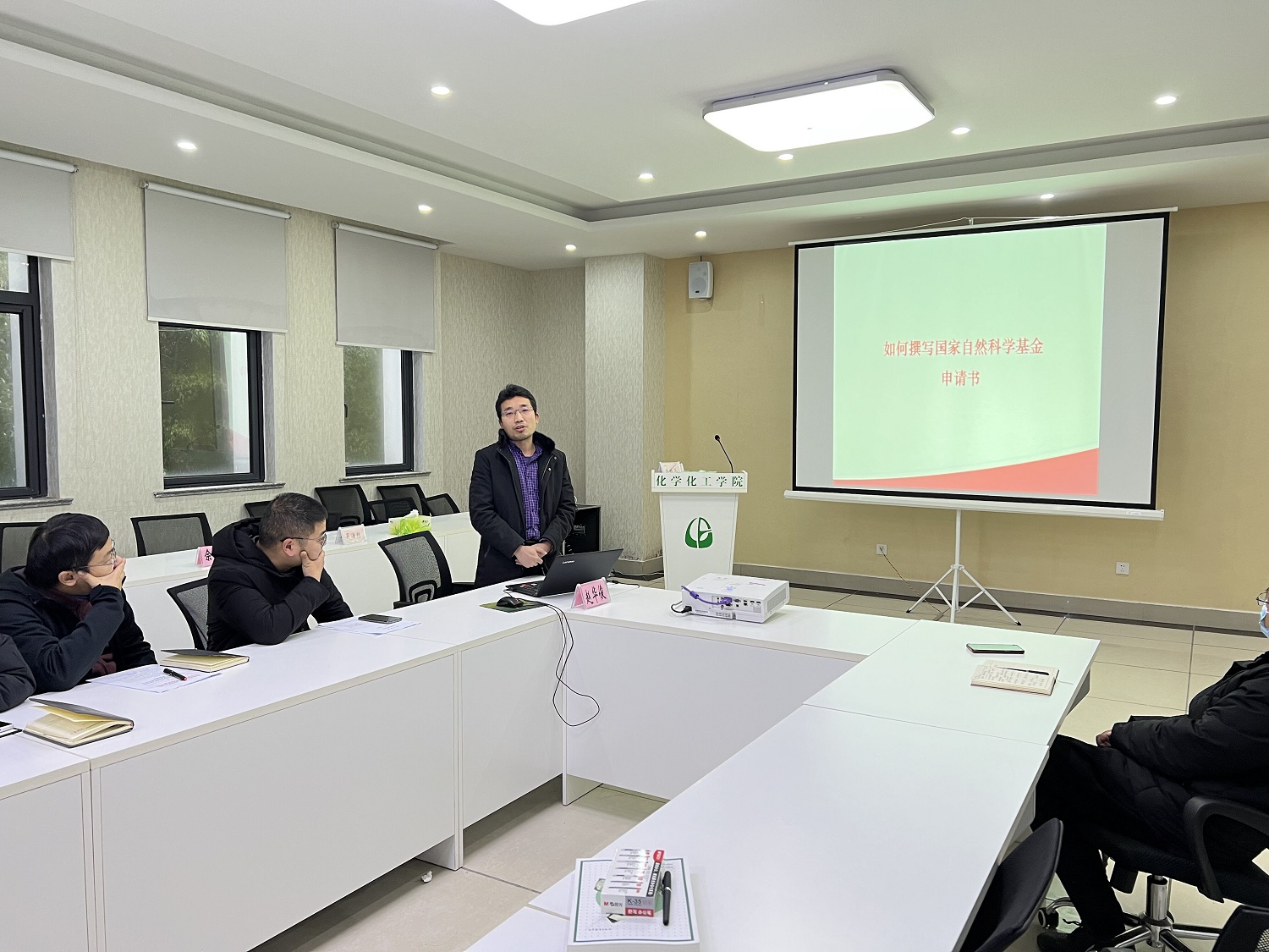 为了进一步做好国家自然科学基金项目的培育和申报工作,推进学院科研工作的高质量发展,2月12日上午,学院邀请赵华俊教授做“如何撰写国家自然科学基金申报书”专题辅导报告,全院高级职称和博士教师聆听了报告并参与了经验交流,报告由化学化工学院院长方辉平主持。