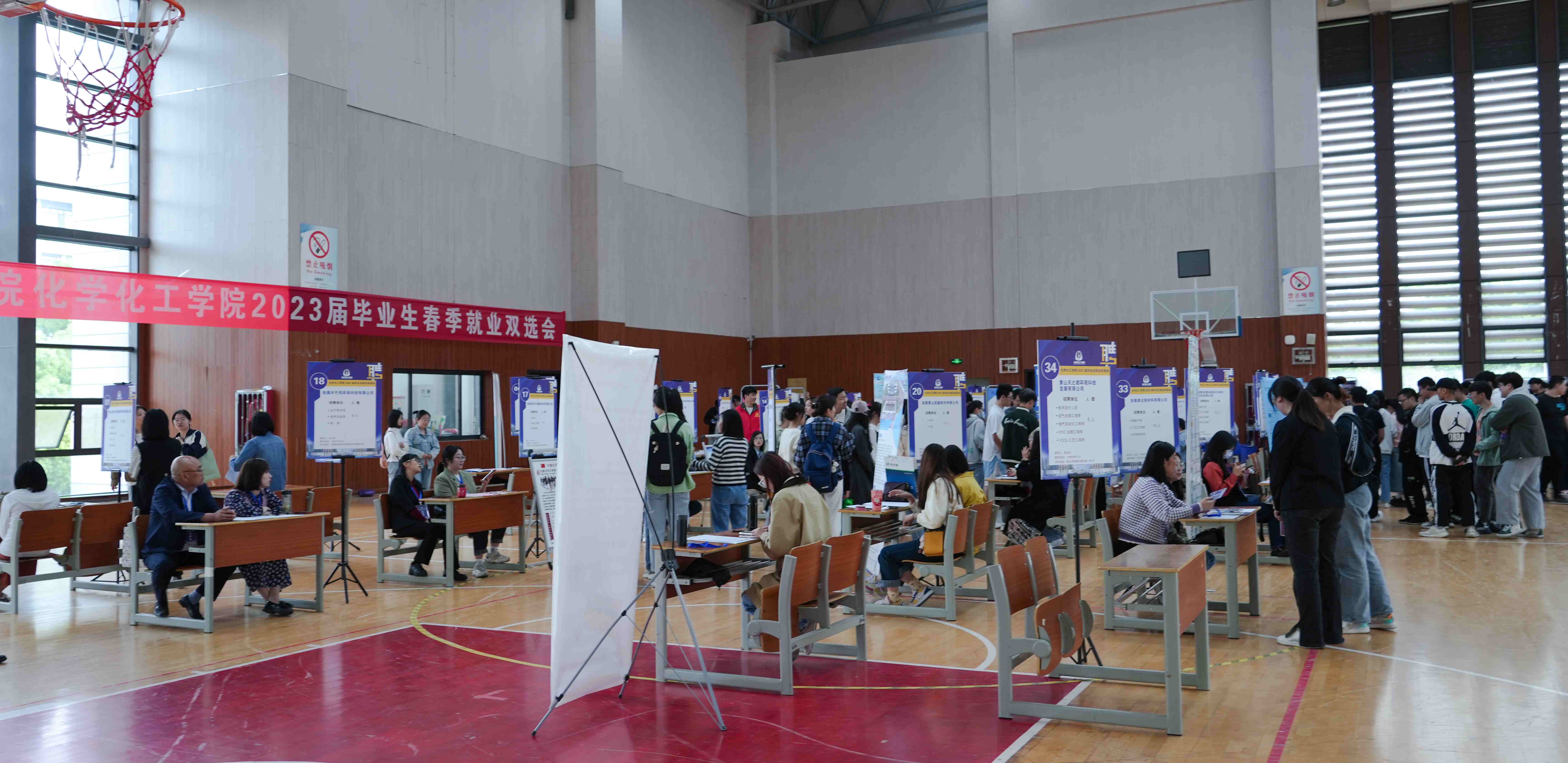 为推进毕业生高质量就业,搭建用人单位与毕业生面对面交流的平台,化学化工学院于2023年5月10日在体育馆二楼举办2023届毕业生春季就业双选会。学生处领导,化学化工学院领导班子、教研室主任和全体毕业班辅导员参加了招聘会。