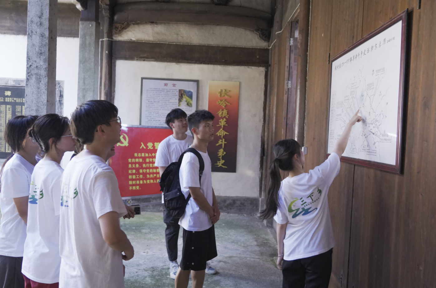 在伏岭镇,实践队员们先后前往祝三村、水村、大障村参观了皖浙支队祝三整编旧址、绩溪县第一党支部成立旧址、大障山革命历史纪念馆。全面了解到革命斗争的光辉历程,革命烈士的崇高精神,近距离追忆党的峥嵘岁月,追思人民英雄的爱国情怀。