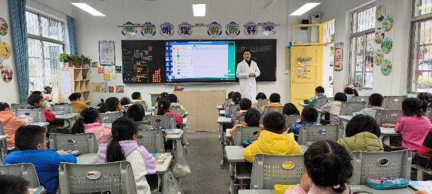 我院教师江学凯博士从“什么是化学变化”,到生活中的衣、食、住、行样样离不开化学,向小学生们科普生活中的化学知识,让孩子们发现原来生活中处处充满“化学”,并通过趣味问答和生活中的各种常见小实验,激发起学生们对化学知识、科学知识的热爱。