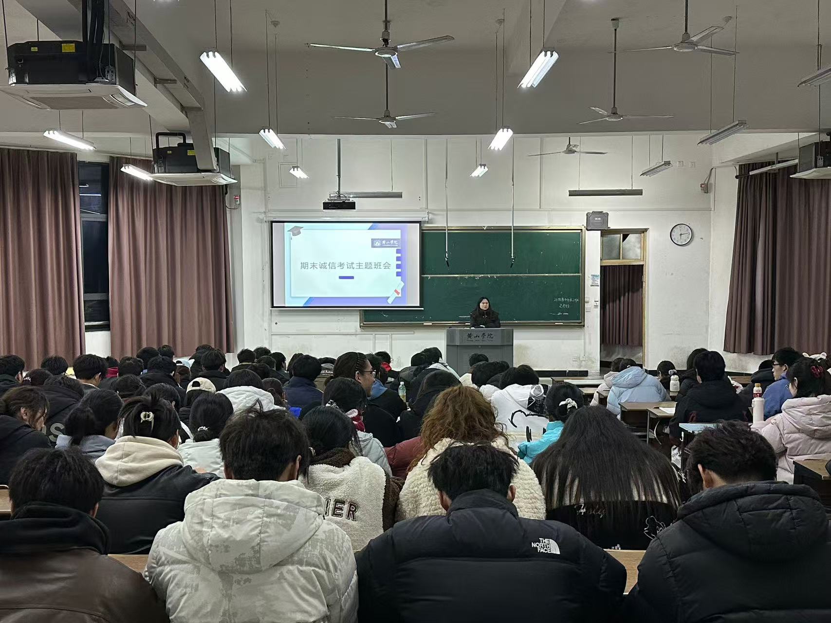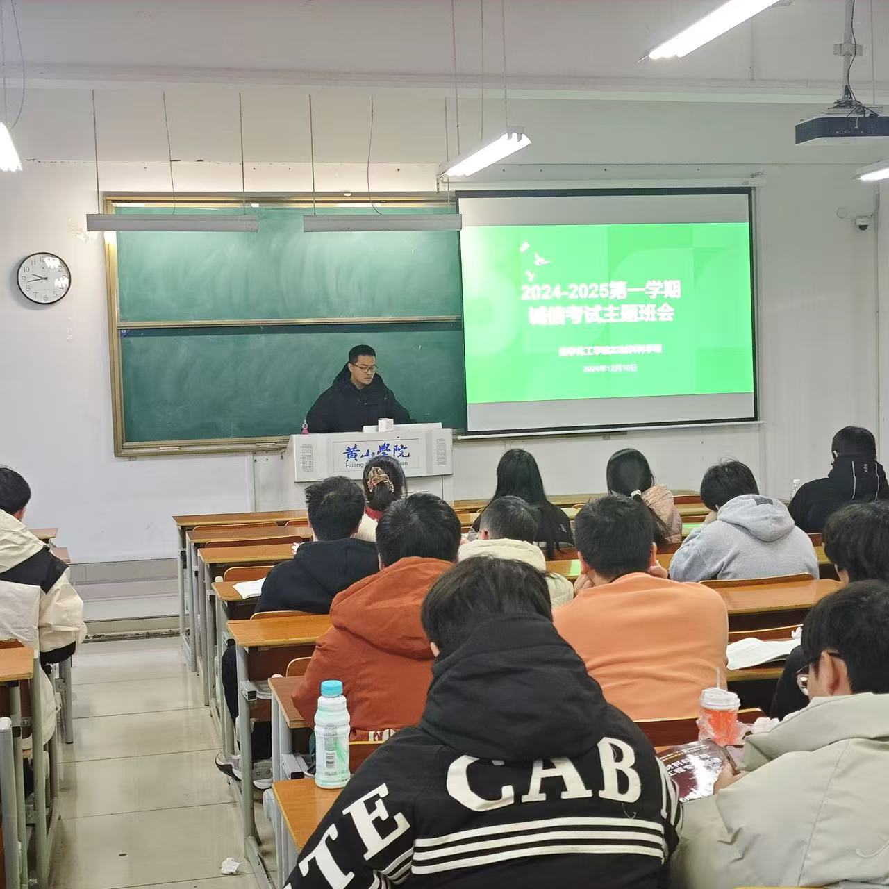 临近期末,为进一步增强同学们的诚信意识,树立良好的考风考纪,助力优良学风建设,营造公平公正的考试环境,化学化工学院组织各班级开展诚信考试教育主题班会。