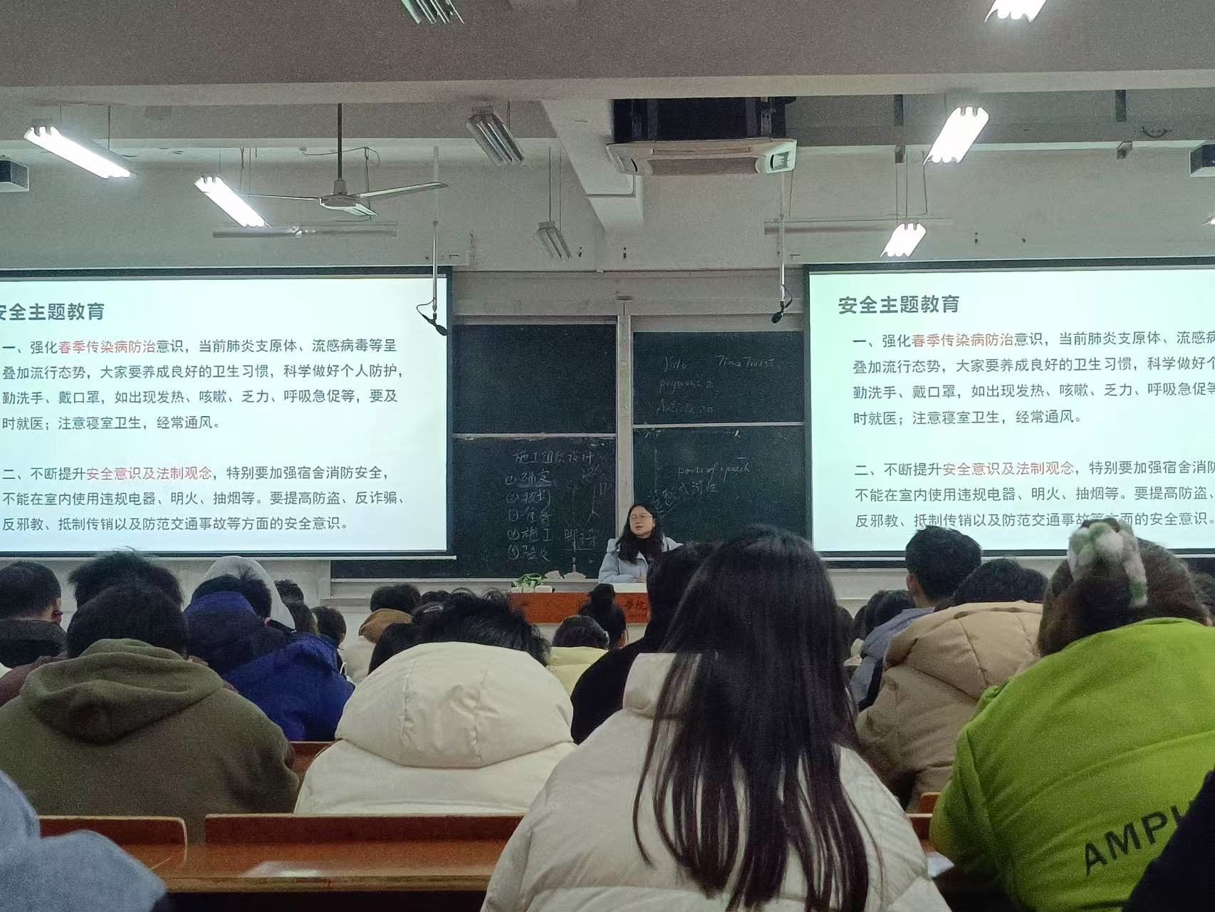 各班辅导员组织召开安全教育主题班会。班会上,辅导员带领学生学习学校安全工作的重要安排部署以及相关的法律法规与校规校纪,强调校园安全。通过典型案例以案说法,使学生真正汲取教训、受到警醒,提高安全意识。