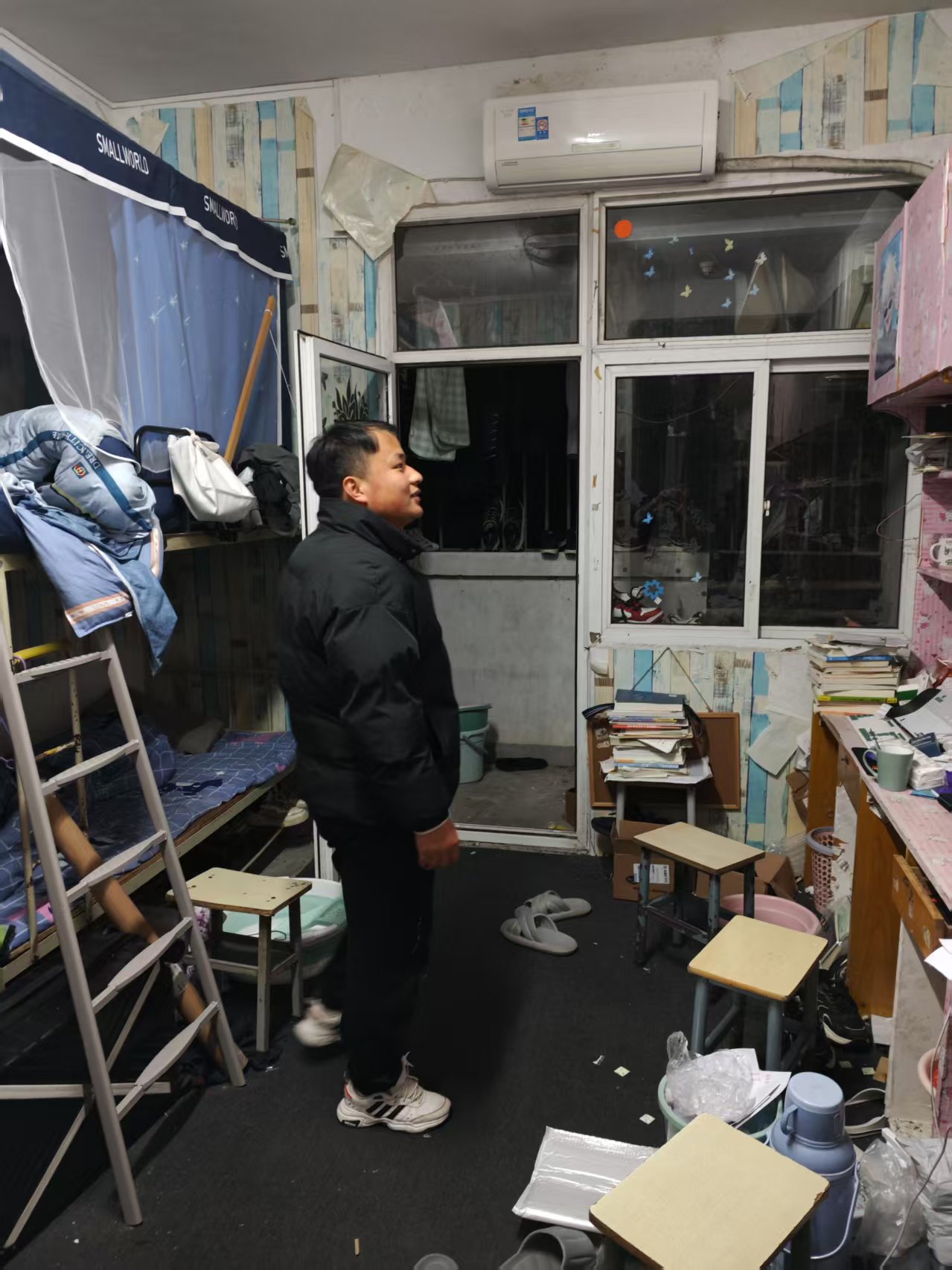 走访学生宿舍,深化关心关爱关怀。各辅导员深入学生宿舍,进行专项检查,重点关注消防安全、用电安全、宿舍环境整洁度等方面。并与学生进行了密切交流,关心他们的学习和生活,了解学生的思想动态。